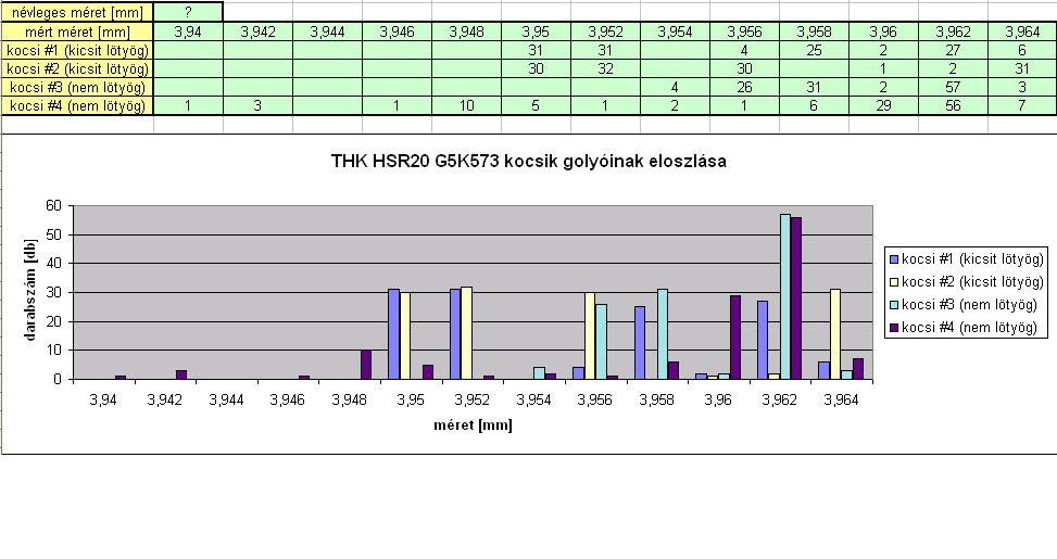Itt az én mérési eredményem THK HSR20 kocsik golyóiról. Passzaméterrel mértem nyáron. Nem tudom, hogy segít-e, csak info...