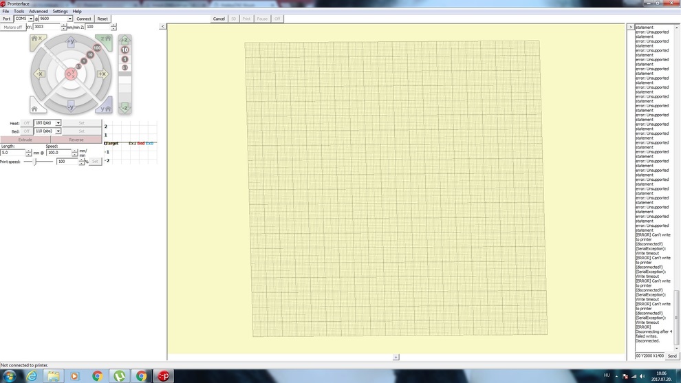 Sziasztok olyan kérdésem lenne hogy Pronterface mindeg ezt a error kódot dobja ki!!(unsopperted statement ) ennek mi lehet az oka??