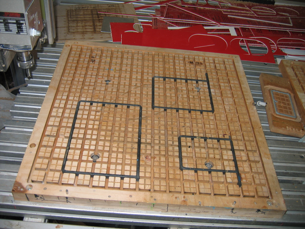 Vákuum asztalra szoktak tenni egy vékony MDF lapot, hogy ne marják szét az asztalt.