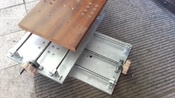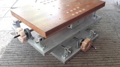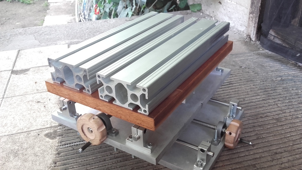 Szóval. Szabadidőmben fával foglalkozom, legálisan tartható fegyverekhez csinálok markolatokat. Pl. gázpisztoly markolat készítés, puskatus felújítás. A fában lévő belső kimarásokat eddig oszlopos fúróba fogott marófejjel végeztem, a fát kézzel mozgatva alatta. Nos, nem éppen szívderítő, amikor a marófej esetenként 1-2mm-re dolgozik az ember ujjától... Ezért készítettem egy egyszerű koordináta asztalt. Az alu lapok 12mm vastagok, 200x300mm-esek.A menetes orsók és a lineáris vezetők 8mm átmérőjűek. Az asztal hasznos munkaútja 160mm X és Y irányban. Egyik ismerősöm konyít valamennyit az ilyesmihez és azt mondta, hogy "ez annyira jó lett, hogy érdemes lenne CNC alapnak használni, kicsi pénzből meg is lenne".
