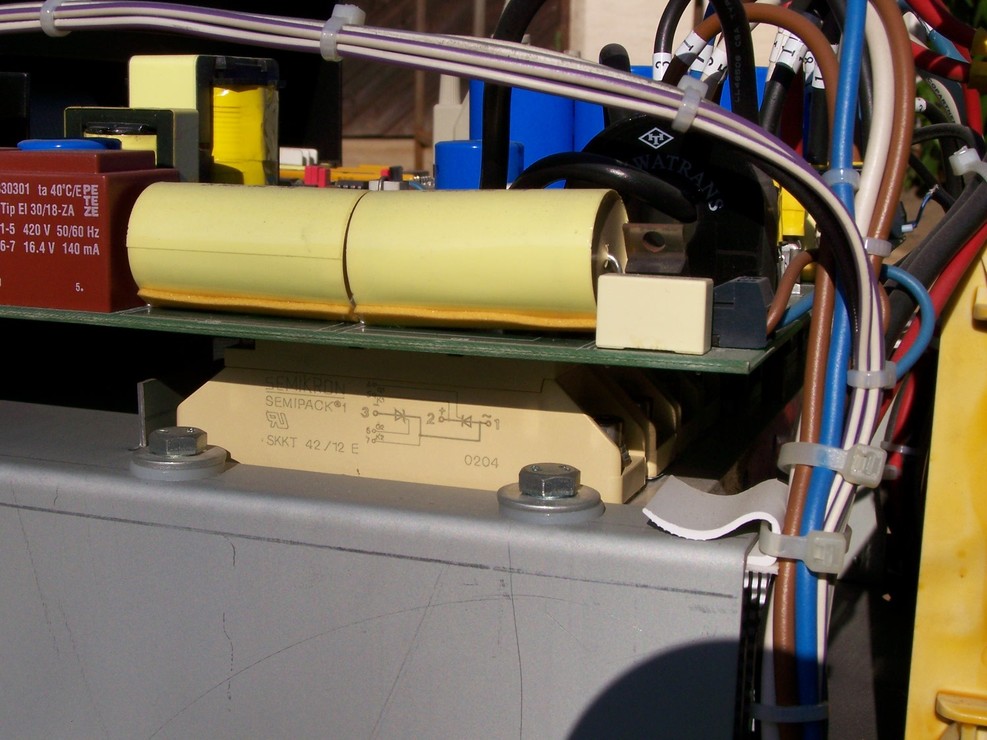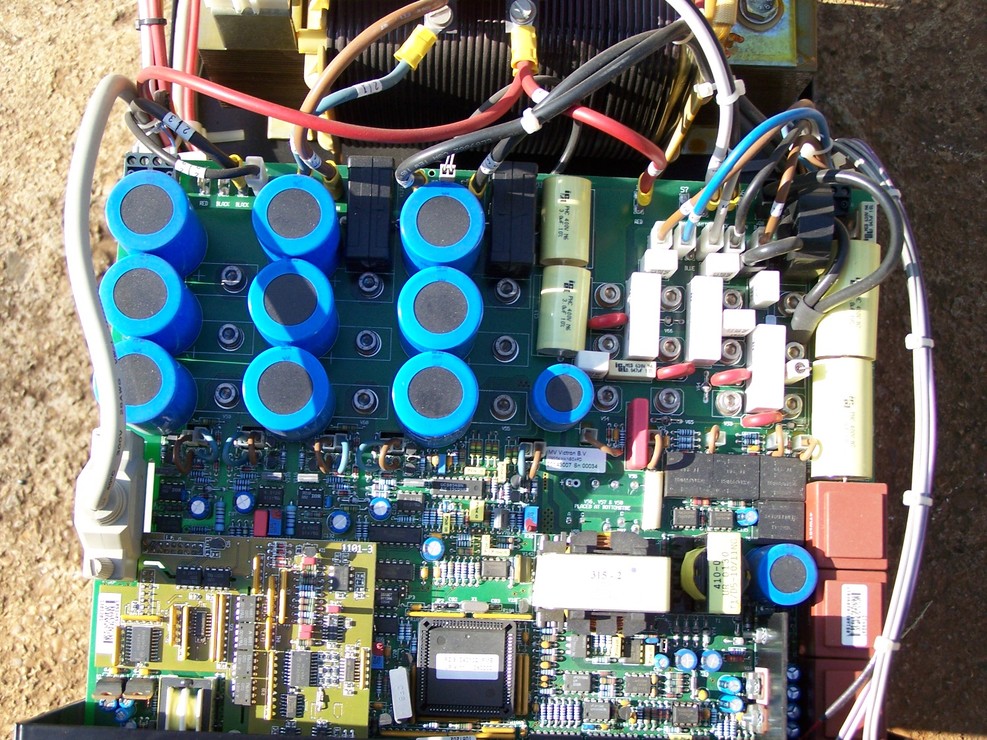 Ekkora teljesítménynél már nehezen tudom elképzelni , hogy nem szinuszos lenne - persze nem szabályos szinusz görbe . Nagyon nagyot rúgna ha sima négyszög kimenet lenne meg nem is engedélyeznék - de látszik , hogy komoly a vezérlése + 3 darab  IGBT modul és 4 darab tirisztor modul  .