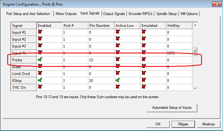 Sziasztok segítségre lenne szükségem[#integet2] a mach3 ban szeretném kiprobálni egyszerű alakok digitalizálását a kérdésem hogy hol kell beállítani azt hogy melyik pinre van a tapintó kötve  elöre is köszzzzzzz!!!!!![#nemtudom]
