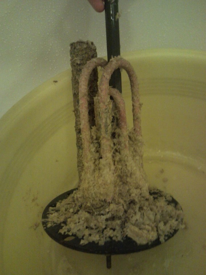 A fűtőbetét 20%-os ecetbe lett áztatva ami jó pár óra alatt le is szedte a lerakódást.