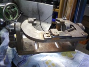 Az eszköz nem gyári tartozéka a gyalunak. Valami nagy sorozatban készült munkadarab speciális befogójának tűnik. ( Gondolom nagy sorozatban kellett valami egyszerű műveletet végezni betanított gépkezelővel. Talán nem is gyalulást, hanem valami hajlítás besajtolás jellegű dolgot. A lényeg az lehetett hogy ne kössenek le ezzel egy hatékonyabb gépet. )