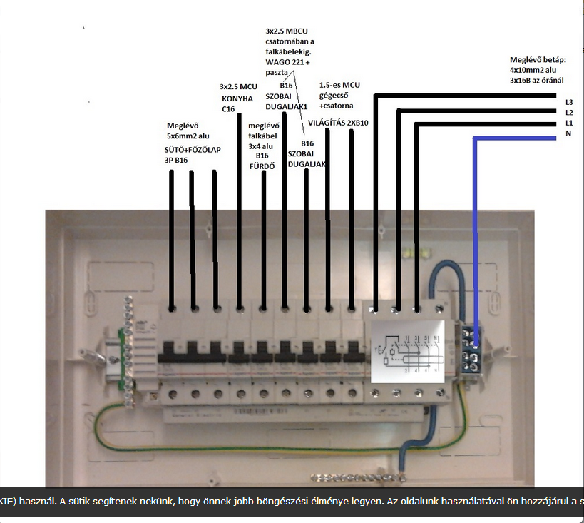 És igen, a nagyobb névleges áramú kismegszakítók vannak az avk mellett, tehát ball oldalt, a kisebbek meg jobbra.
