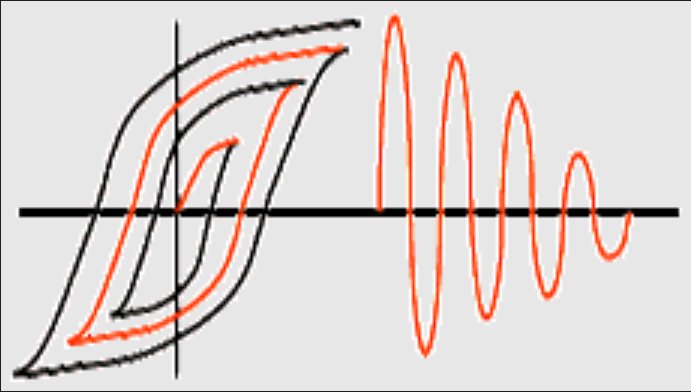 Nem kell szinusz. Váltakozó irányú fokozatosan csökkenő mágneses tér kell.