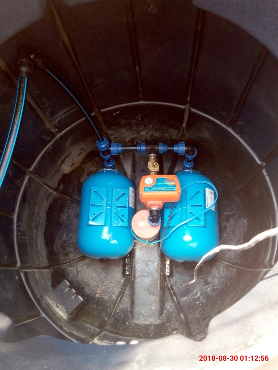 Amúgy szerintem cseréld le a nyomáskapcsolódat egy normálisabb szivattyú vezérlőre, ez bele fér 20-30 pénzbe aztán ha belevegősödik a szivattyúd akkor legalább letilt a szárazfutás védelme a vezérlőnek. Amit még el szoktak szúrni hogy túl van biztosítva a szivattyú így képtelen lecsapni a biztosítékot ha megszorul a motor tengelye. Nagyobb búvároknál ez csinál olyant is hogy felforralja a vizet a kútban amitől meglágyul a PVC cső és össze nyomja a talaj a csövet, aztán se kút se szivattyú. Kis szivattyúknál felforr a víz a szivattyú házban deformálja a lapát kereket és a diffúzort amitől megszorul a tengely és leég a motor. Egy Pedrollo easypress még a segítségedre lehet védelem gyanánt, és a szárazfutás védelme is auto reset-es tehát szárazfutás esetén csinál újra indítási kísérletet, áramszünet után pedig szivattyú indítást ezért nem kell állandóan mászkálni az aknába és nyomkodni a gombot mint egyik másik márka esetében. Viszont a kikapcsolási nyomás az a szivattyú max nyomása tehát 5-6 bar- nál többet tudó szivattyúkkal körültekintően kell egybe építeni. A másik "kedvencem" a tartály. Inkább legyen több kicsi mint egy nagy. Ha csak egy van akkor az egyetlen romlott el és hát olcsóbb is a 2 kicsit javítani mint az 1 nagyot. Sajna ezek a mai membránosok van hogy még a gari végéig sem bírják.