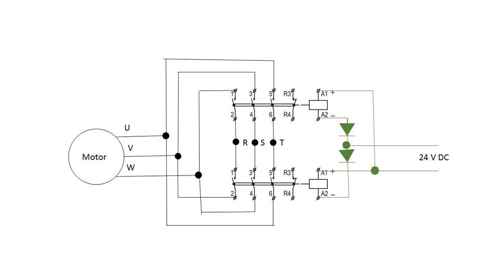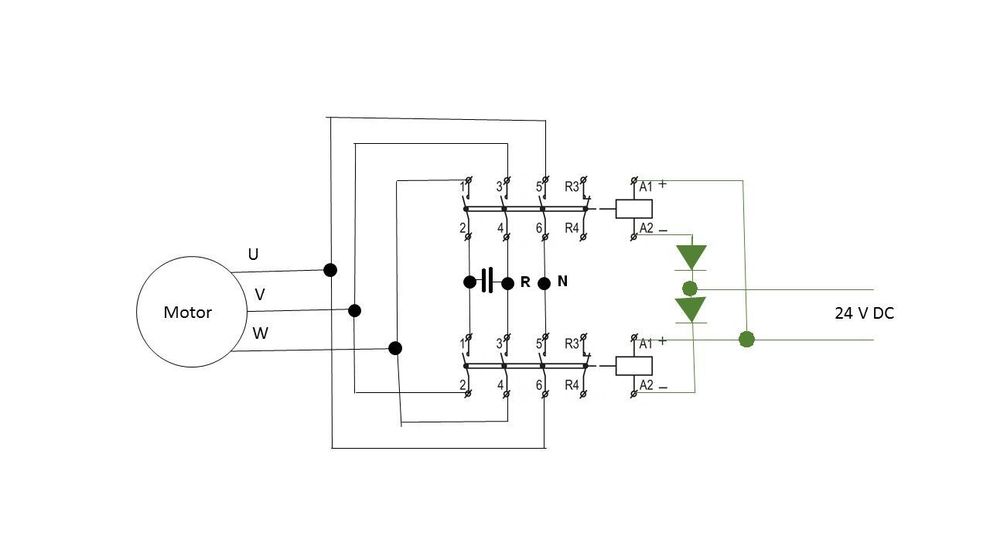 Ja, és ha már DC mágneskapcsoló (vagy relé) akkor a behúzó tekercsek mellé illene egy-egy antiparalell dióda is