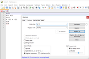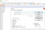 - Ctrl+H vagy Search menü > Replace paranccsal indítsd el a kicserélős dialógust.