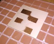 A 3 kis kép közül a bal oldali gyakorlatilag csak két részből áll (égetett/fehér). Semmi átmenet nincs. A többi kép régebben készült és lakkozott felület, de így is látszik a különbség.