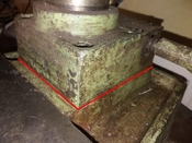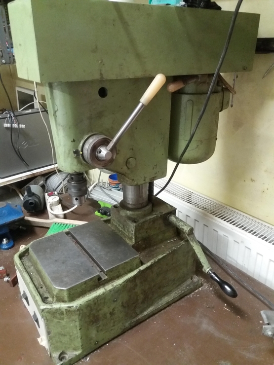 Sziasztok! Igaz, hogy béna is vagyok, de most csak egy kis ötletelésre szeretnélek kérni benneteket. Van egy békebeli orosz (szovjet) asztali fúróm. Fel szeretnék rakni rá egy meglévő keresztsatut, de akkor alig marad a tokmány alatt hely, egy 10-es fúrót sem lehet befogni mert mélyebben van a hegye a satunál akkor is amikor teljesen feltekerem fúrót az oszlopon. Egy szó mint száz szeretném kb. 100 mm-el megemelni a fúrót az alsó öntvényhez képest. Erre van lehetőség, mert a talphoz csak 2 db 10-es imbusz csavar (és két 6-mm-es illesztő tüske)rögzíti (a második fotón pirossal van az osztássík). A kérdésem, hogy hogyan és miből lehetne a magasítást legegyszerűbben elkészíteni? A felfekvő felület 120 x 150 mm.