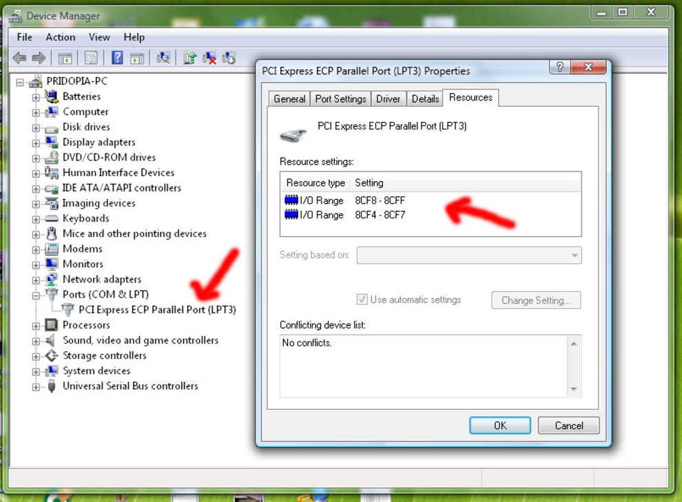 Ha nem ez van, akkor próbáld esetleg azt ki hogy az eszközkezelőben keresd ki az LPT kártyát, (lásd csatolt kép) és az IO Range résznél lévő első cím tartományt kell elvileg a MACH3 port&pin beállításához beírni az alap beállítás 0x378 helyett.. remélem segít... ha igen, írd meg, mert még nekem sem megy :D