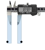 Azon jár asz eszem, hogy egy olcsóbb 150 mm-es digitális tolómérő pofáit kéne meghosszabbítani, és a toldás végébe egy-egy kis csapágygolyót ragasztani. Ezután 100 mm-es távon "lenullázom" a tolómérőt. Így a kijelzett érték elé egy "1"-est biggyesztve meg van a méret. Csak kérdés, mennyire merev a rendszer, illetve a rövid csőrre méretezett csúszka mennyire viseli el a 150 (160) mm hosszú karok nyomatékát még ha óvatosan mérek is vele.