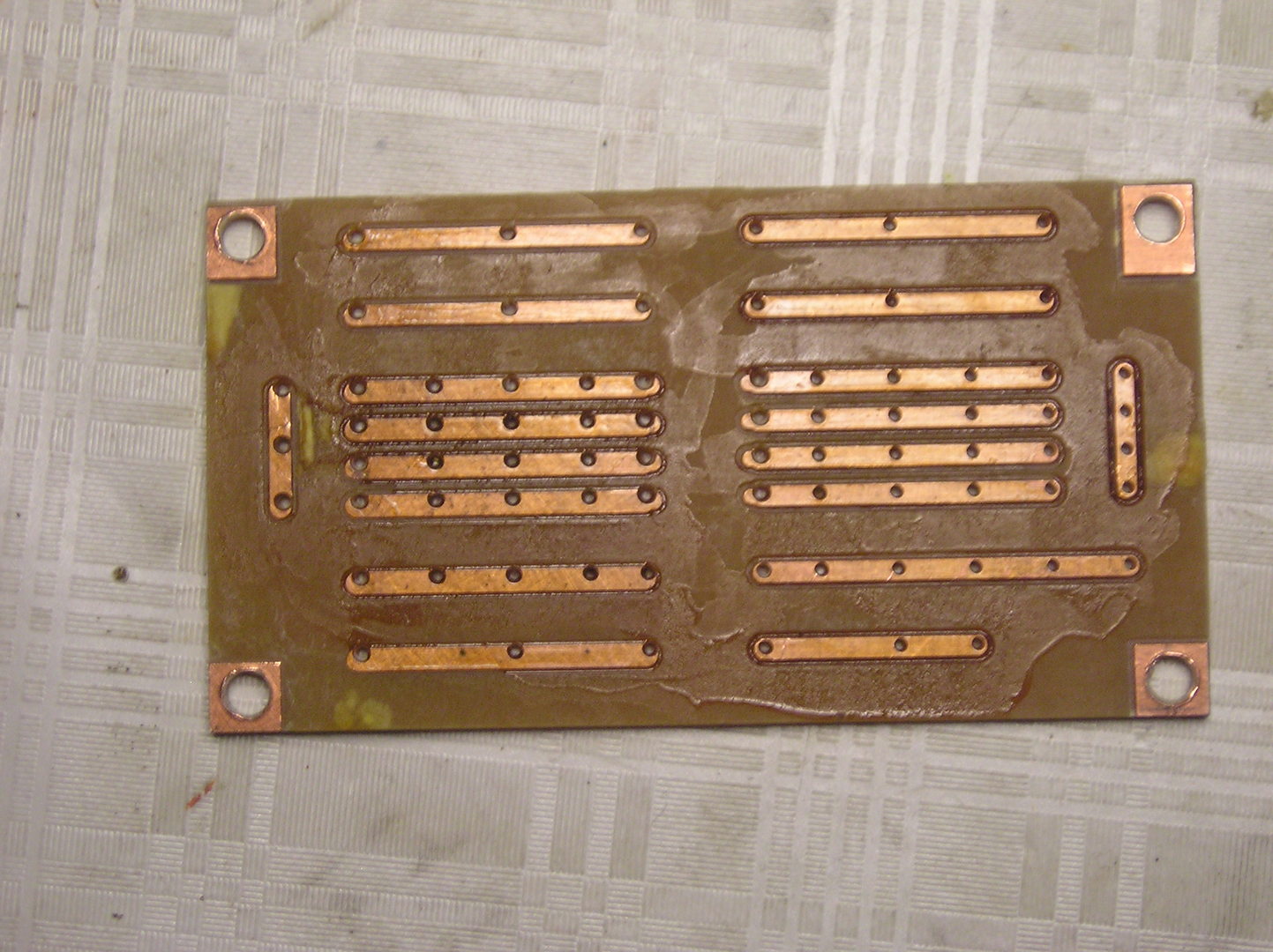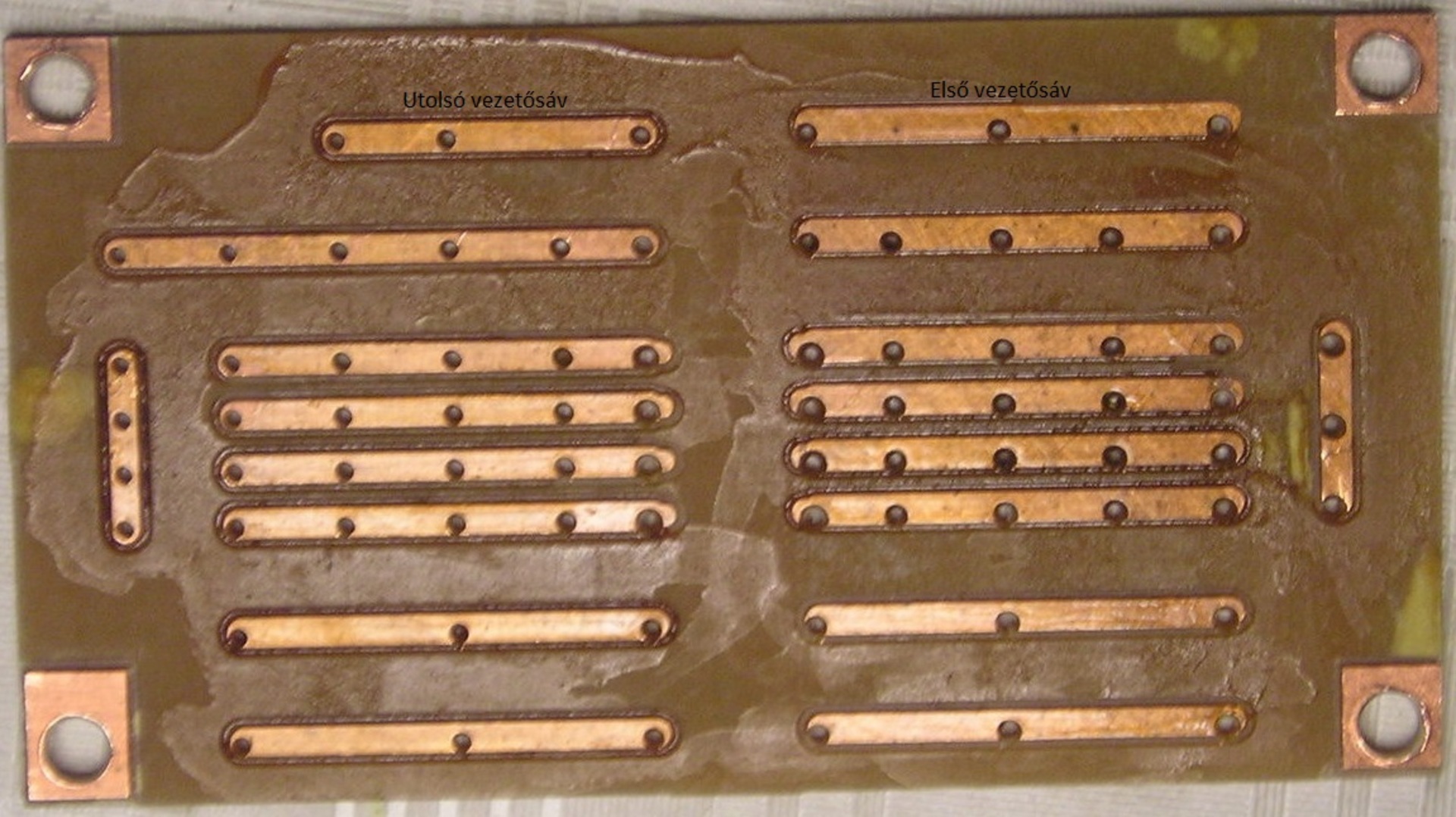 Először a vezetősávokat maratom ki, 0.04 mm mélyen (mintha ez is több lenne), majd a gravírozó tűvel (d0.2) "pontozok". Azt elég merevnek gondolom, csak azután fúrok, miután átírom a z mélységet.