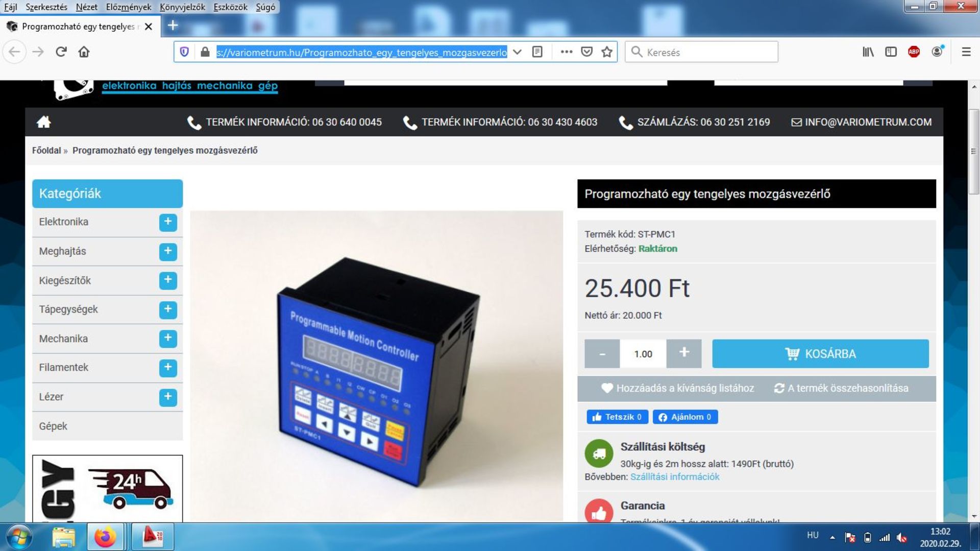 Ehhez a vezérlőhöz egy léptetőmotor vezérlő és a léptetőmotor kell.