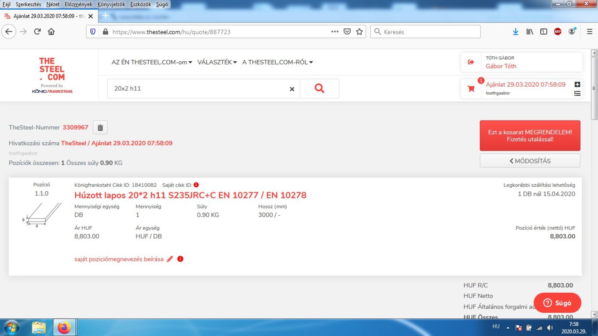 Lehet is kapni azt a H9 20x2 lapos acélt?