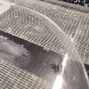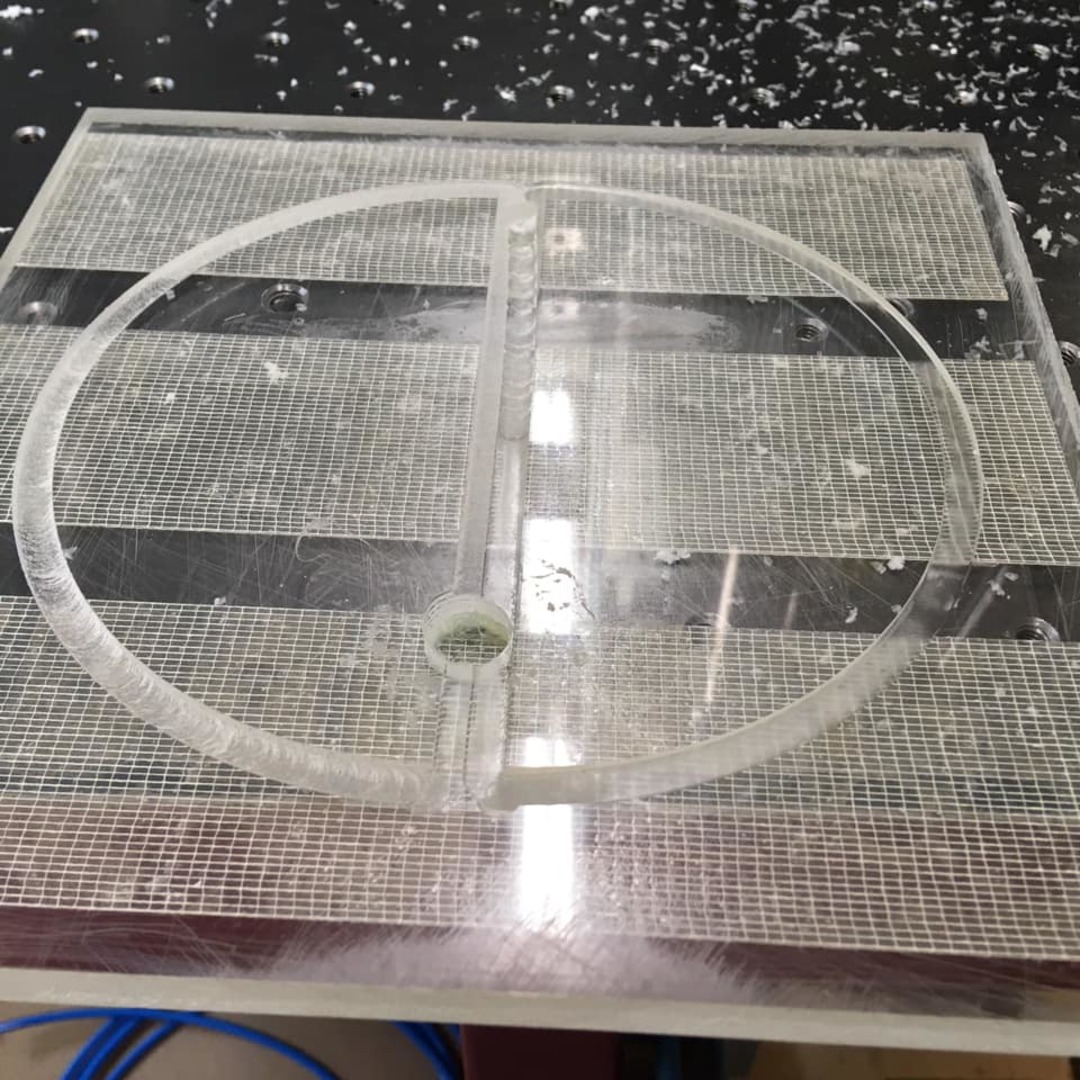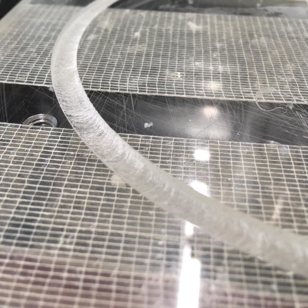 Amig a marószár az anyagban XY síkban halad, addig minden jó, nem keletkezik kis gyűrű a marószárón plexiforgácsból. Amint az anyagba Z mentén süllyesztem szinte mindig keletkezik. Ezt most egy kis fadarab odaéríntésével megoldom. De macerás állandóan figyelni és félek ha felgyülemlik akkor problémát okoz.