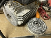 A motor az évek alatt kompletten ledobta a festést, vastag oxidréteg képződött a testén.