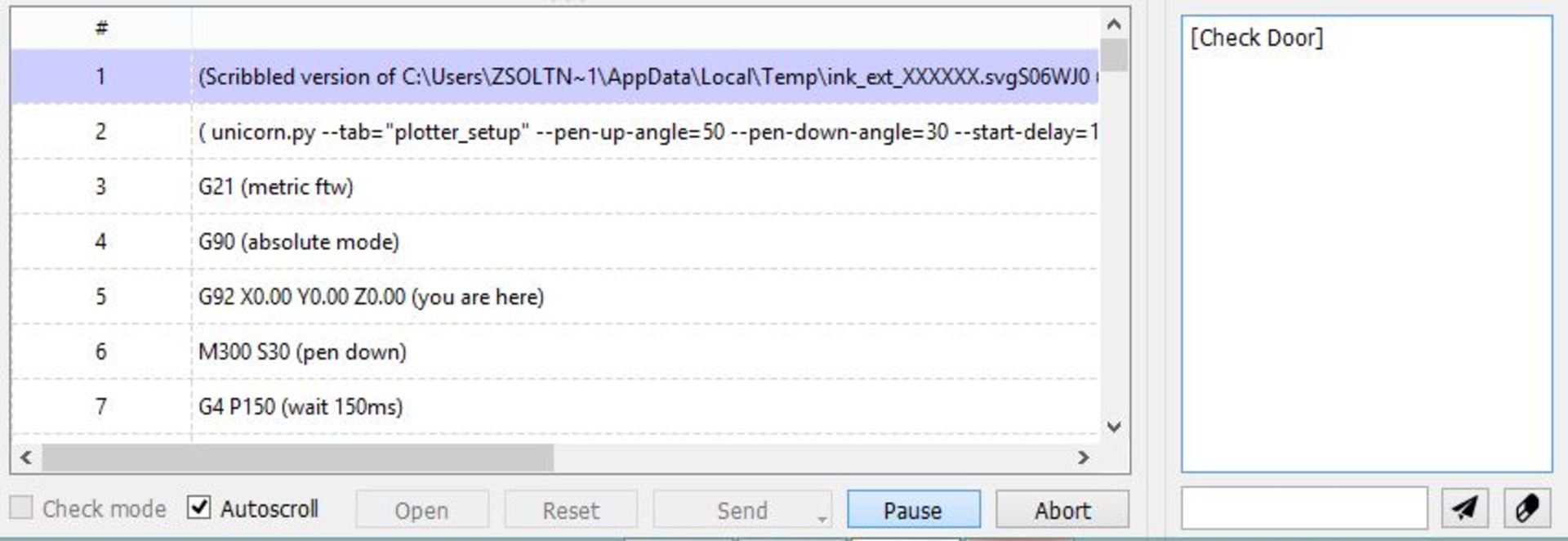 Próba képpen konvertáltam egy képet a DotG nevű programmal, azt a G kódot gond nélkül elkezdi csinálni a Candle, nincs a Check door hiba, csak ez meg nem az, ami nekem kell, mert ez ugye dot alapú.