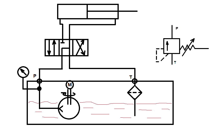 Ha a munkahengerre ható nyomást szeretném szabályozni, elég-e a jobb oldalon lévő (nem bekötött) nyomáshatároló szelepet P és T közé bekötni? Vagy az inkább biztonsági elem?