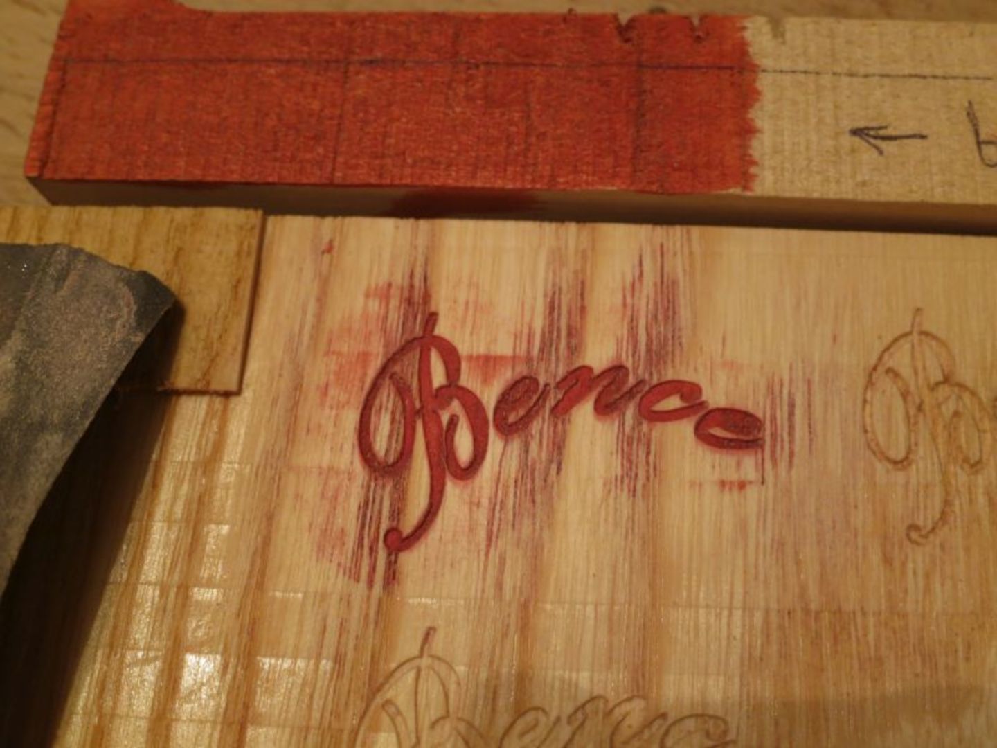 Nem nagyon gravíroztam még a géppel, de most lenne egy esküvői ajándék, amit szépen meg kellene csinálnom. A probléma az, hogy a gravírozott betűket be kellene festenem. Az lenne a módszerem, hogy nagyolva befestem, majd síkba csiszolom, ami elvileg lehozná a fölösleges festéket. A gyakorlatban csak részben működik, mert a festék ( pontosabban pác ) beleívódik a fába és nem hozza le szépen a csiszolás. Olvastam régebben, hogy a fa szálait le kell zárni valahogy, ezért megpróbáltam első lépésben lakkal lefújni, de így sem lett jó az eredmény (lásd kép). Meg tudná valaki mondani mi a jó módszer ? Köszi.