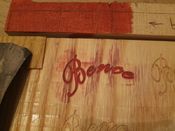 Nagyon régen gravíroztam fába, úgy emlékszem Tempera vízes alapú festékkel festettem meg, a szélekről letöröltem frissiben.