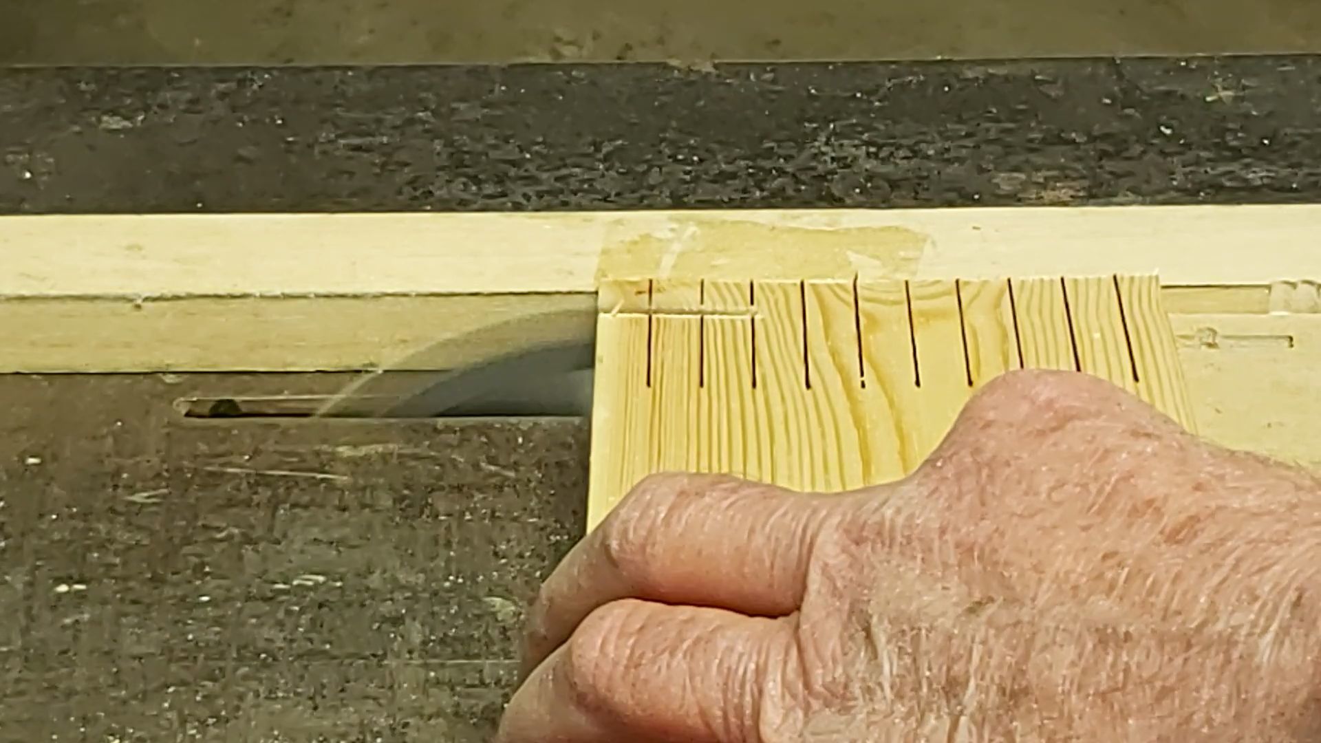 4. Ha jól látom, alig több a fűrésztárcs kiálló magassága, mint maga az anyagvastagság, ez messze van az ideális forgácsolási elrendezéstől.
