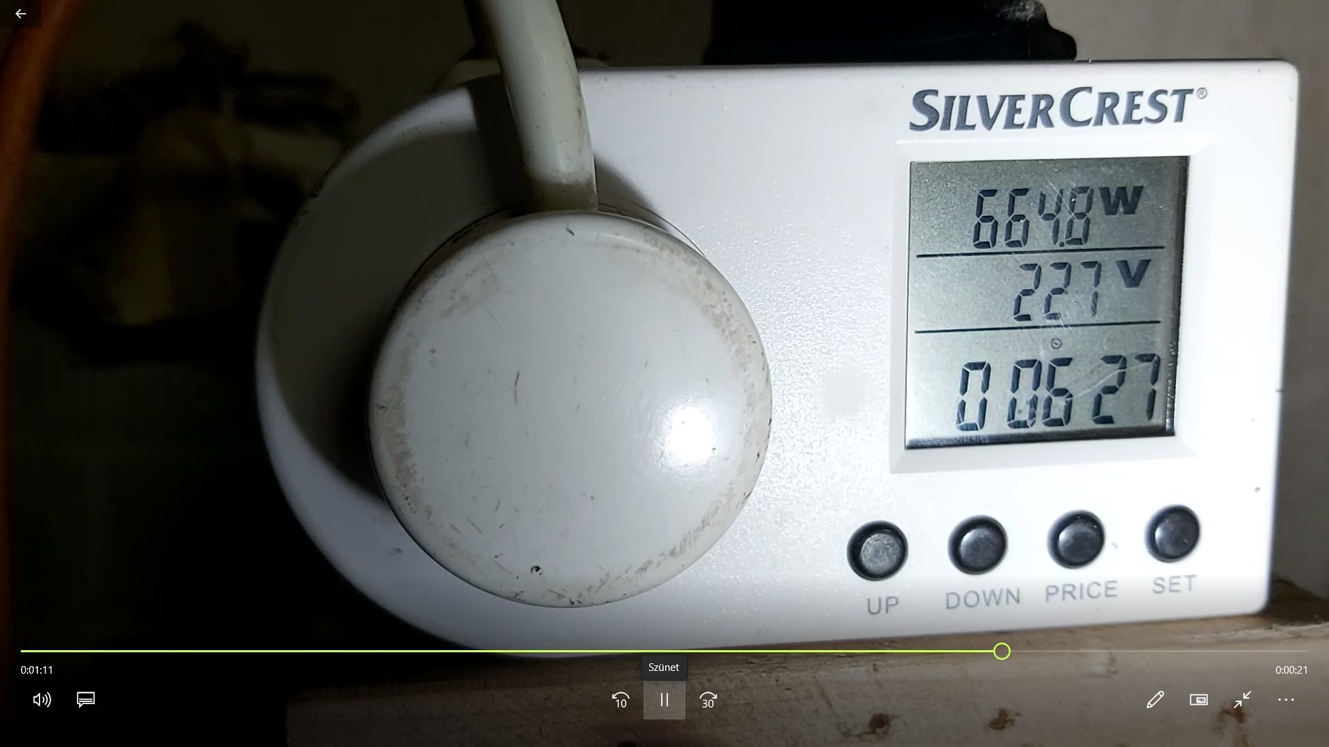 Vágás közben 515W körüli, míg csomóban 665W a teljesítmény felvétele