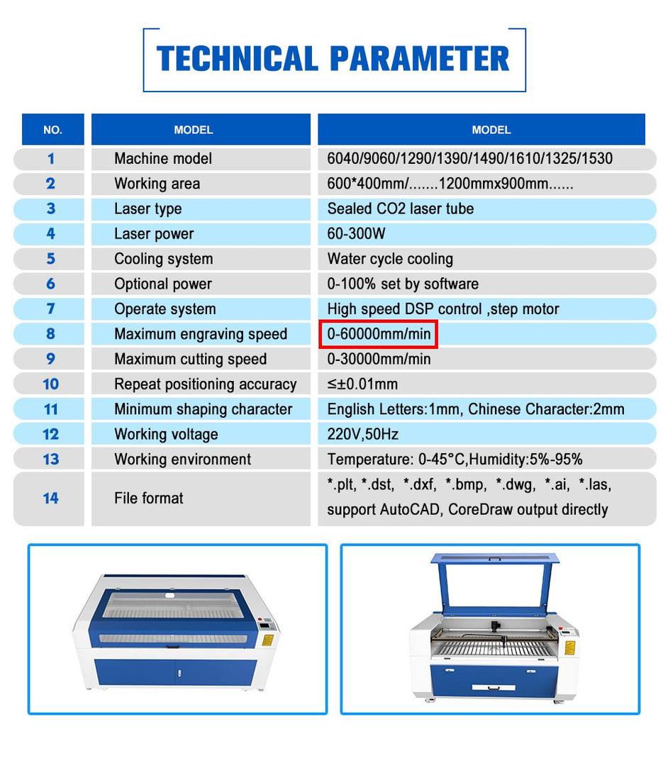 Pl. itt van pár hétköznapi kategóriájú, kínai lézer CNC gép példaként. Paraméterei között pirossal bekereteztem az általad még soha nem látott és nem is létező 1 m/s sebességet, amit ennek a gépnek a léptetőmotoros hajtása is tud.
