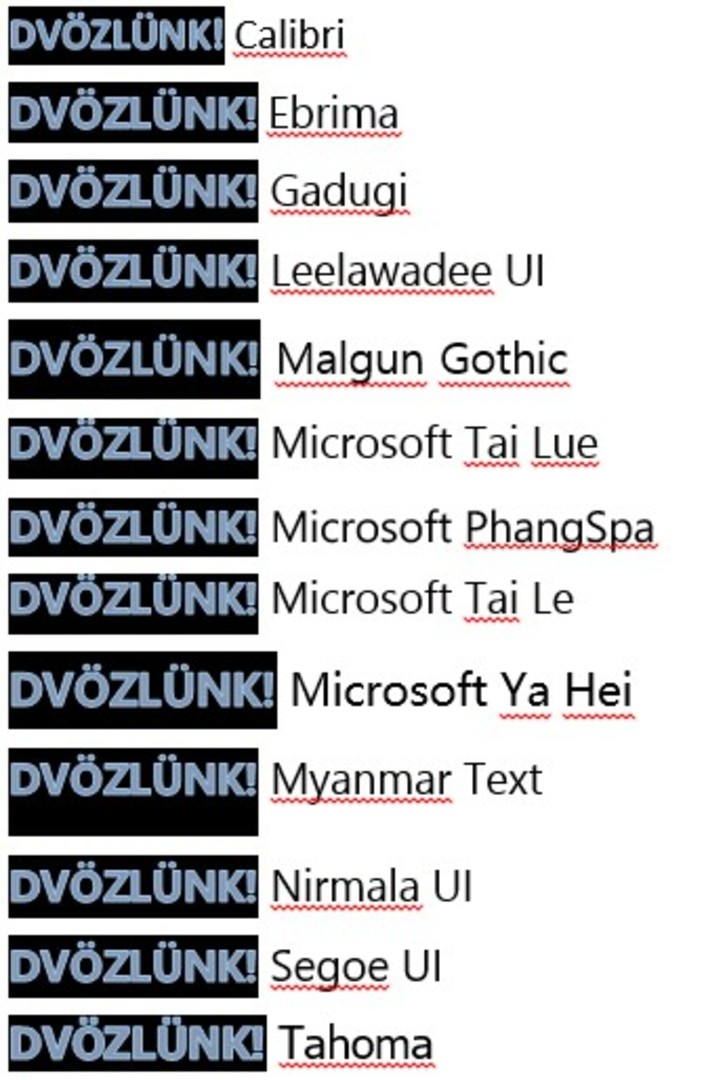 Elsősorban azt néztem, hogy az ékezetek "pöttyök" és ne négyzetek, a betűk vonalai meg egyforma szélesek legyenek.