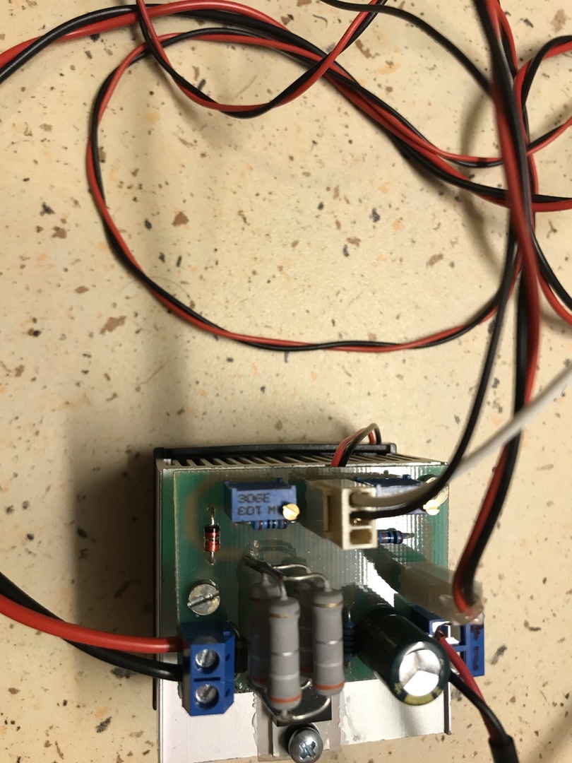 Mivel a leírásban az volt a kérés, hogy legyen egy stabil külön táp, ezért vettünk egy külön tápot, amire rákötöttünk egy kapcsolót, amit bekötöttünk a kolléga által feltöltött "+- tápérintkezők"-re.
