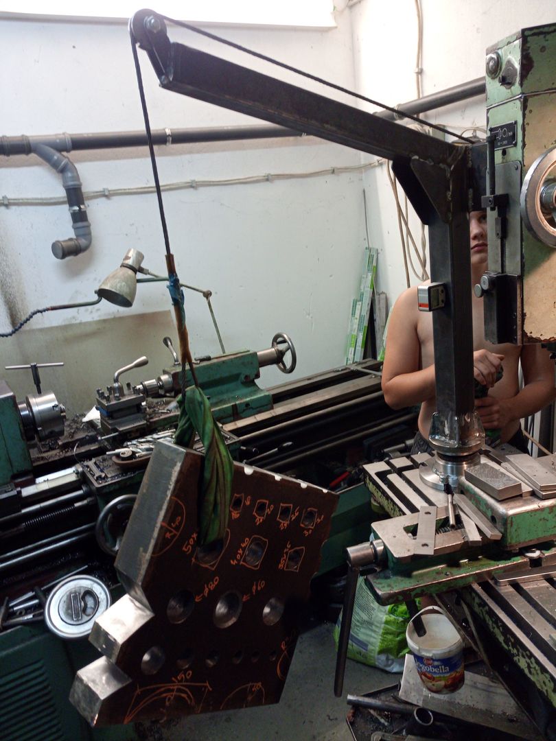 Én hozzátok képest taknyos vagyok, de nem akarok nehezet emelni. Tavaly összedobtam egy ilyen forgózsámolyos emelőt az itthon fellelt hulladékokból, kézicsörlővel hajtott, amire akksis fúrógép csatlakozik, így öntartó és gyors. Itt épp 100+ kg-os terheléssel tesztelve, az oszlop kihajlás 0.1°. Át tudom szerelni az esztergára ha kell, de bármilyen T-nútos eszközre mehet.