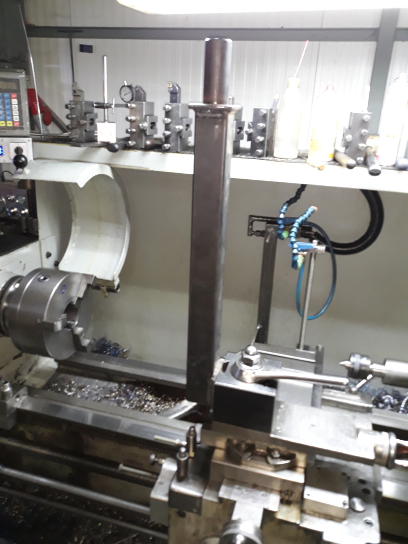 Amit aztán át lehet vinni egy másik gépre is, ahol a gyorsváltó késtartóba befogunk egy függőleges oszlopot...