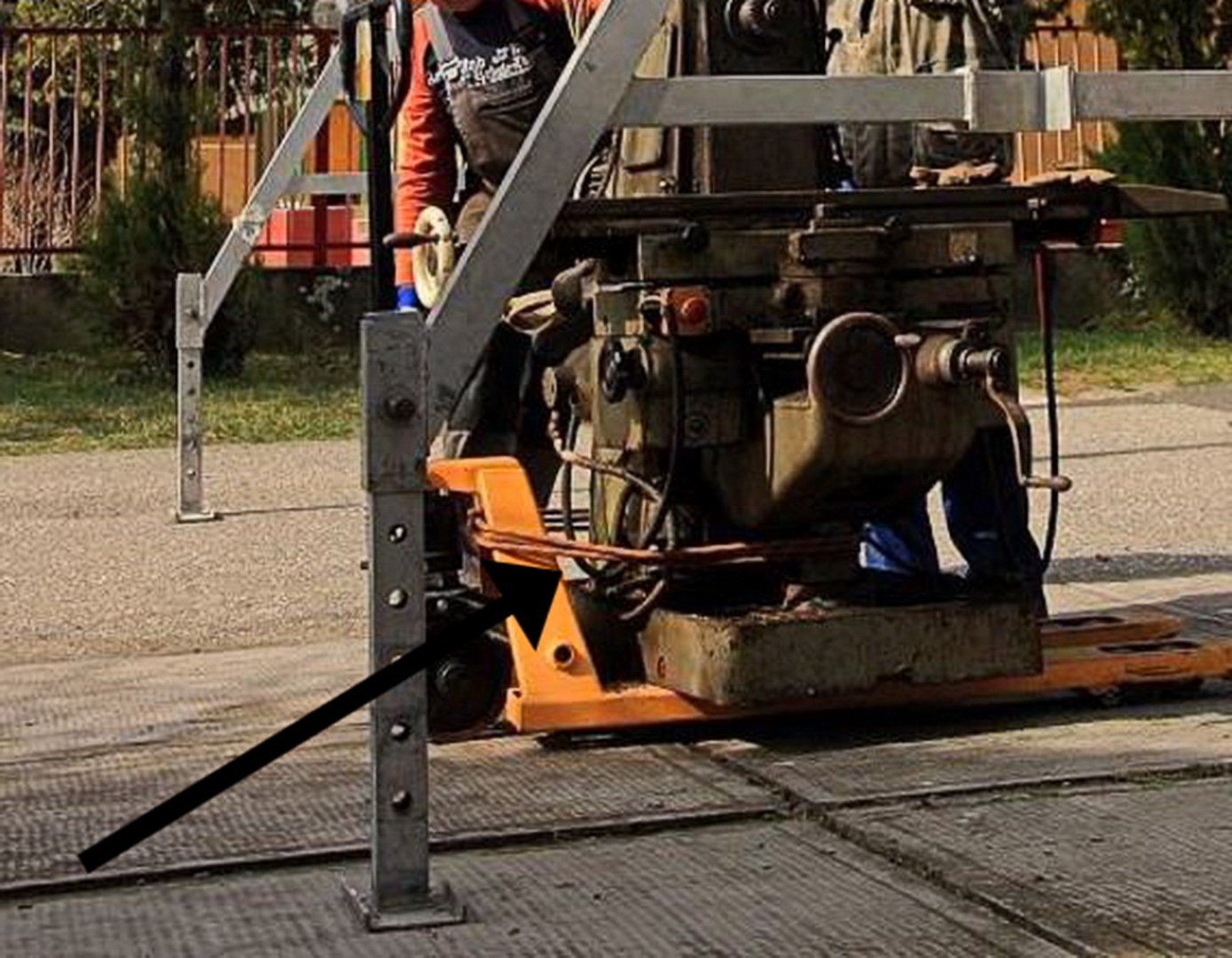 Kisebb gépeknél ,mint ez is , a géptalpnál szélesebb két kerékkel ellátott acélgerenda profilt szoktam a géptalp rögzítő csavarjaira csavarozni és akkor nem "billenik".