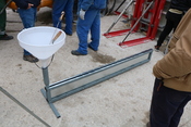 Nem tudom, hogy a környékeden merre lehet bádogos bolt, de nálunk (Érden) kettő is van. 2,5 m x 1,25 m-ig bezárólag bármekkora lemezt, csíkot levágnak mm pontosan, ha kéred élhajlítva, szélén korcolva stb. Nem is drága. Már többször rendeltem tőlük egyedi lemezprofilokat. Ezt a "vályút" egy réskitöltő anyag folyásvizsgálatához csináltam, 2 m hosszú, 20 cm magas és 2 cm széles a rés. A két oldala horganyzott lemezből van, a tisztíthatóság kedvéért szétszedhető.