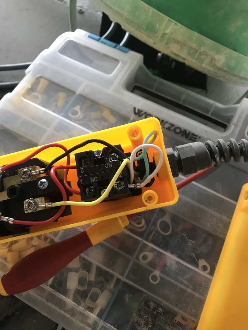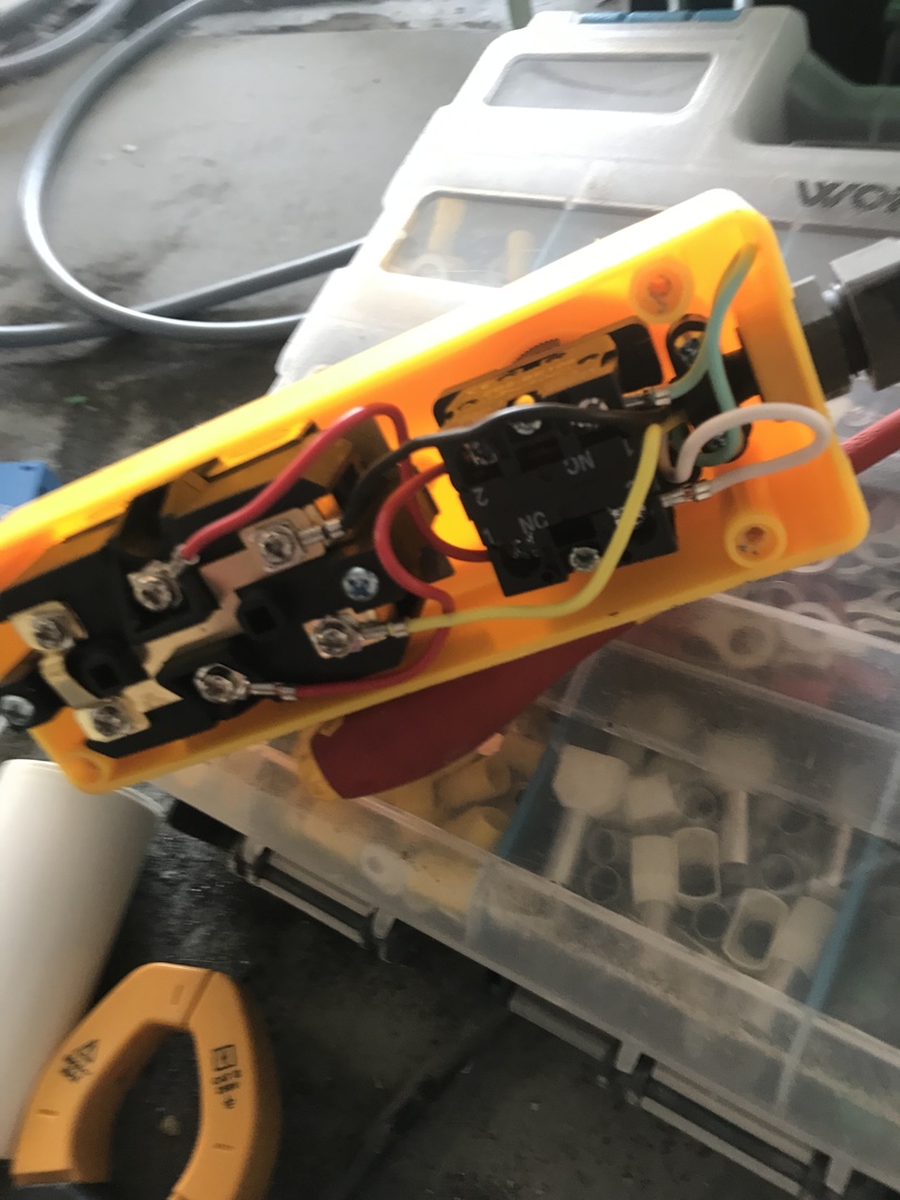A fel nyomógomb helyére fel mágneskapcsoló a le nyomógomb helyére le mágneskapcsoló kontakt. Van benne vészgomb, azon normálisan keresztülmegy a villany. Ezt vagy bennt hagyod, vagy más helyre áthelyezed, nem árt ha kéznél van működéskor.