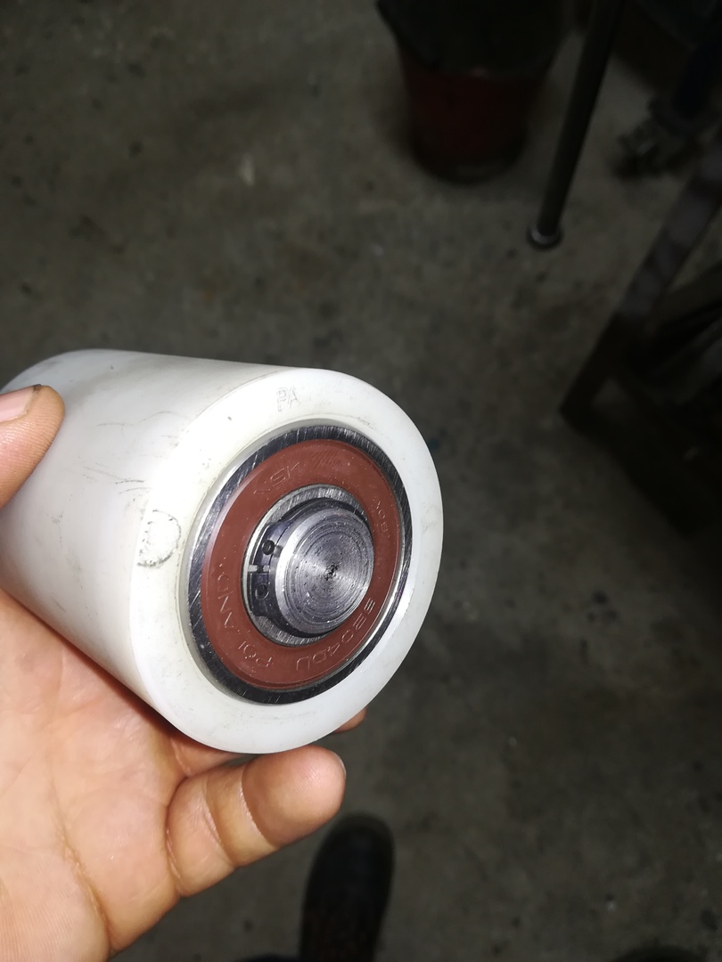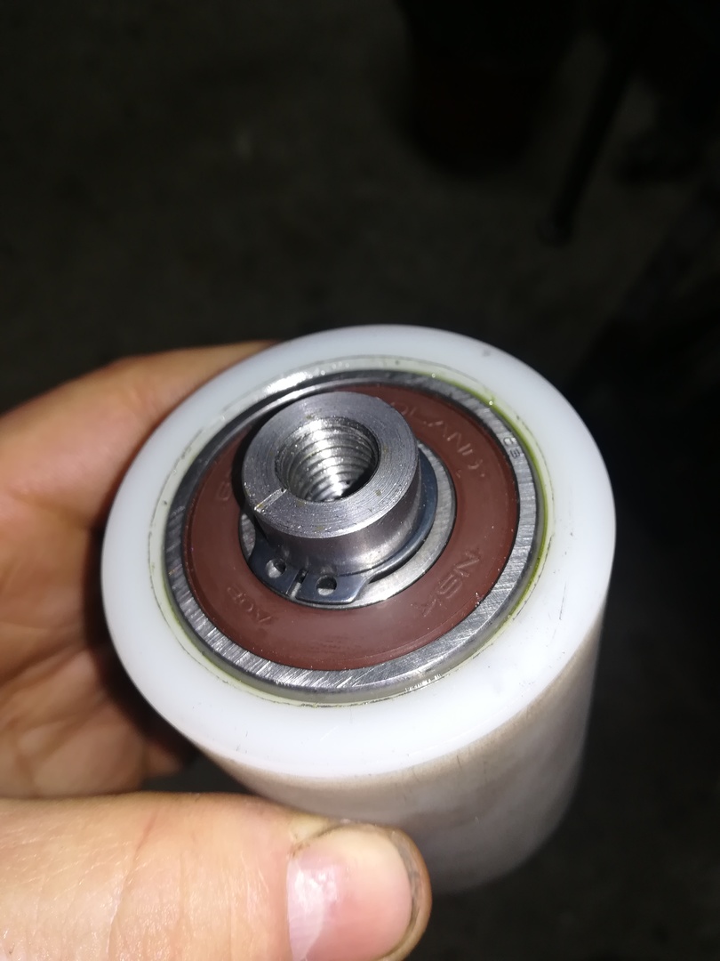 A műanyag hengerbe megvan a csapágy helye kiszedve, nem kell túl erősen beleütni, szépen bemegy, a tengelyre is annyira kell felütni amennyire szerintem teljesen jó, nem szorítom össze, nem az fogja meg.