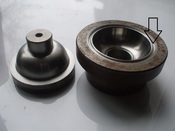 Tudja esetleg valaki, hogy ez mi lehet.? Tizenhuszon kilós 2 db precizen egymásba illő "vaspogácsa" az egyik közepe homorú a másik domború egy kis éles kör perem a széleken,valamint 3 furat az egyik oldalán. Kb 175 mm átmérőjűek és 40 mm vastagok.