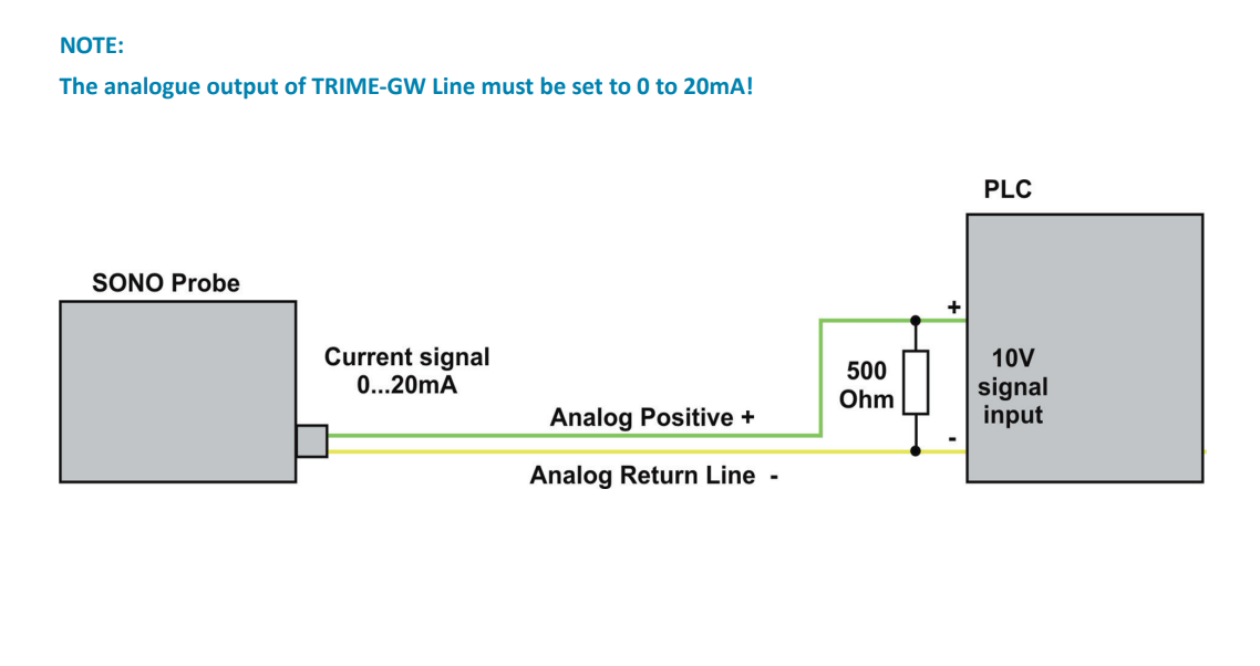 Kimenetre kötve (+zöld-sárga)az ellenállást multiméterrel feszültséget mérhetsz 0-10V-ig. 0-20mA kell programozni hozzá a szenzort.