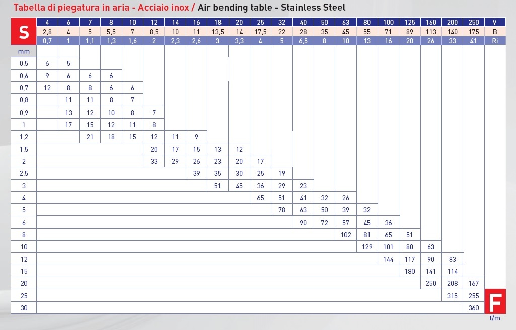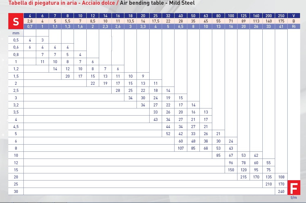 Ezért a táblázat iránymutató, de 135 tonnás gépnél a tonna nyomási érték az módosítható anyaghoz képest. De azért minden penge max 50-75 tonnára van biztosítva gyárilag...persze max -ot írnak ki, de többet is kibír. Inkább az a veszélyes ha elnézed az anyagvastagságot.  Szép nagy csattanással jár...  hiába a biztonsági szelep.. mire reagálna...  már pukkanás van.
