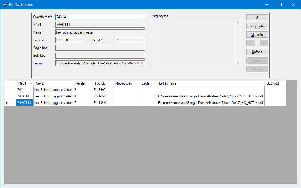 Tudod a mondást: akinek nincs esze... írjon programot. [#vigyor3] Kreténebb alkatrészeknél a bolti kódot is rögzítem, hogy legközelebb ne egy óráig keressem. A pozíció pedig, hogy hol találom itthon. :)