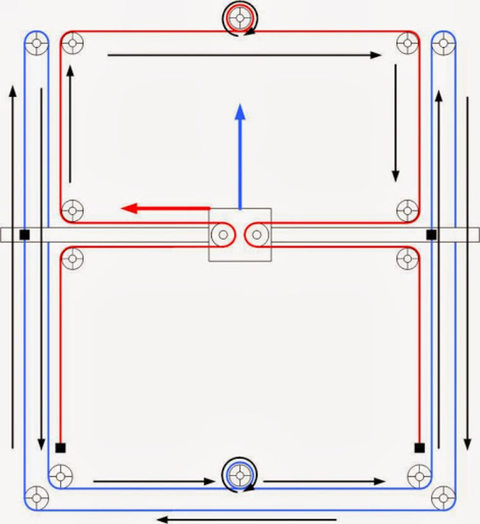 Ketfele "dual wire" rendszert turtam elo. Az egyiknel a motorok ugyanabban a korben vannak es ugye csak a forgasuk iranya hatarozza meg a gep mozgasat. A masiknal viszont az iranyoknak kulon-kulon motorja van. Elobbinel mennyire korulmenyes a post processzalas? (mar ha magyarosithato a kifejezes). Csatolom a ket kepet is, remelhetoleg sorrendben.