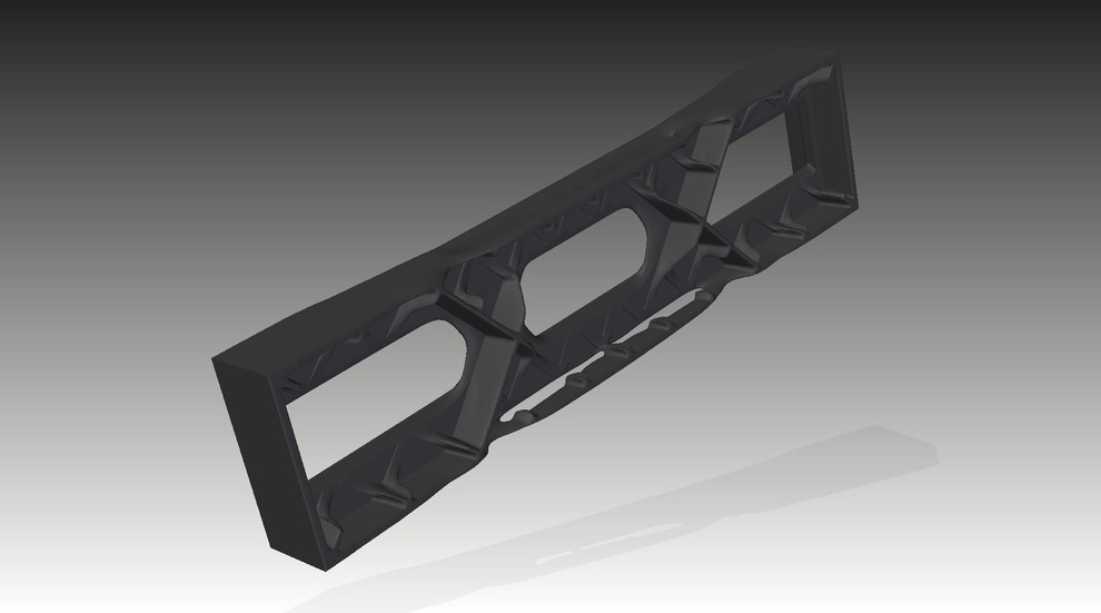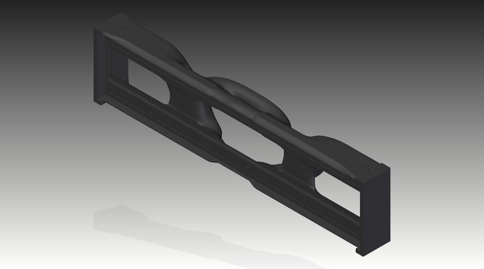 Csináltattam még egy tervezést, úgy, hogy ne vigyem félre a programot a saját bordázási ötleteimmel. Kiindulásnak a híd eleje maradt ugyan az, a hátulját pedig 60mm vastag tömör anyagnak hagytam meg. 50%-os súlycsökkenéssel ezt hagyta meg: