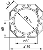 Targonca emelőtornyok profilja, belül párhuzamos oldalfalakkal.