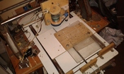 Ezt máris felejtsd el. Ha mindenképpen ezzel a felállással akarsz valamit kezdeni, (addig is amíg átdolgozod az egészet) akkor fogass az asztalra besüllyesztett csavarokkal egy rétegelt lemez lapot, vagy plexi lapot, ami nem nagyobb a bejárható útnál.