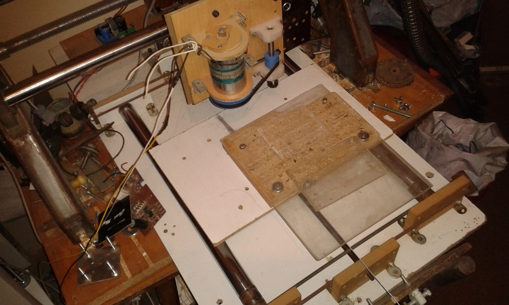 Első sorban PCB készítéshez volt tervezve a gép, ha a vízszintes mozgása is hozza a 0.1-es pontosságot, akkor már lehet vele dolgozni. Ha majd behozza az eddig beleölt pénzt, örömmel váltok sínekre, és golyós orsóra. :)