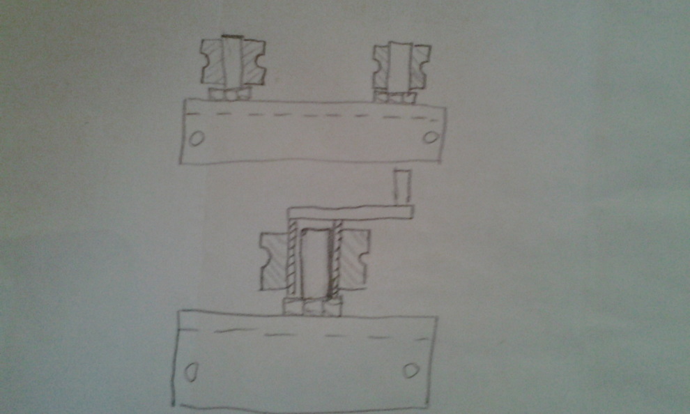 Az egyik szögvasra hegesztesz két húszas csavart a támasztógörgőknek a másikra pedig egyet, ahogy a satuson látod a kettő közé félútra. Erre pedig egy csövet húzol és arra szorosan a hajtógörgőt.