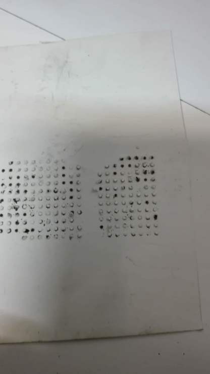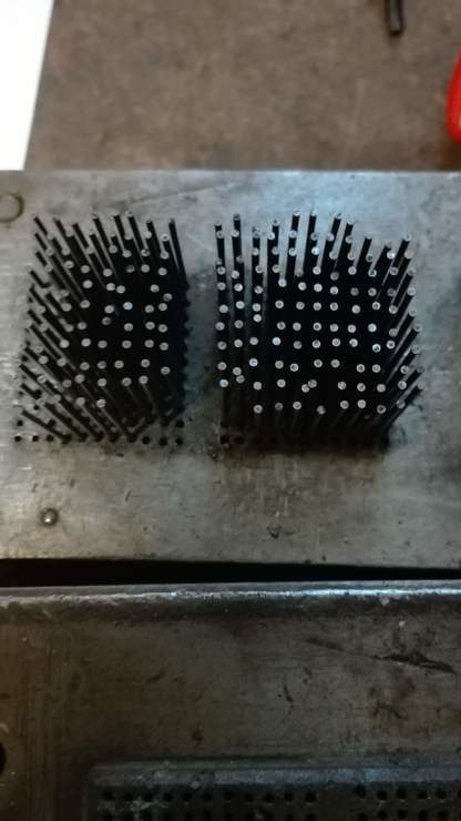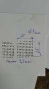 Sajnos a méretek nem teljesen stimmelnek. A kb 100 tüske 2,5 mm raszterban van és a lyukasztó átmérője 1 mm.