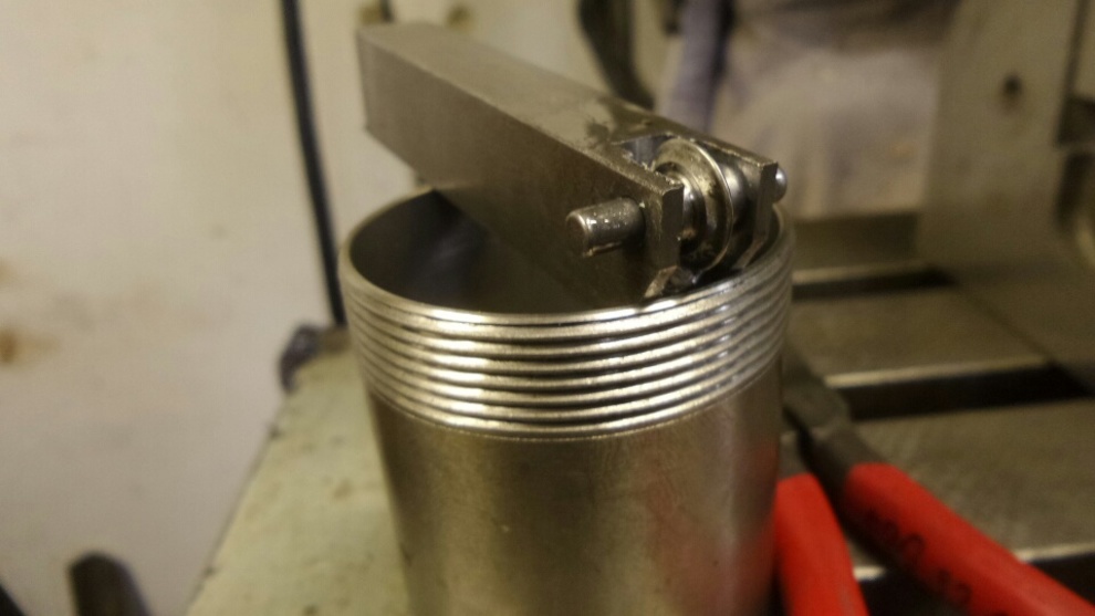 Kiindulásom egy golyó volt amit átesztergáltam 60 fokos görgővé.vékony falú saválló csőből viszont egy mézes hordó csap lesz.