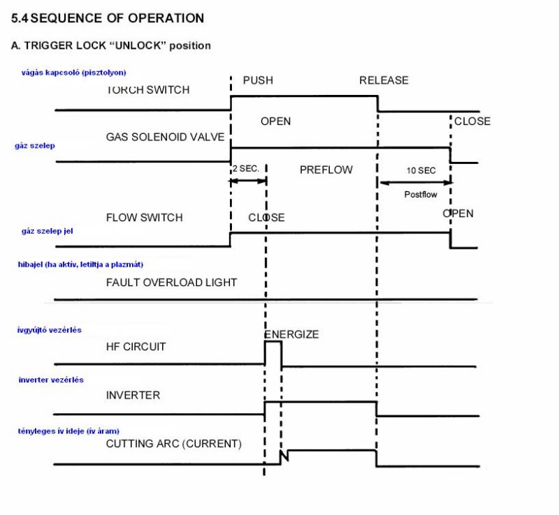 Most hirtelen nem tudok válaszolni az utolsó kérdésedre mert van egy alap programja a gépnek és valószínű az általad is említett ívőr ennek kijátszásával működik ugyanis a van olyan gép ami kikapcsolás után bizonyos ideig ( míg tart az "után fúvás" a vágófej hűtése okán ) nem engedélyezi az újra indítást .  Házilagosan saját HF-es gyújtó ráépítése esetén  könnyebb lenne a megoldás mert a testkábelre helyezett áramérzékelővel vagy régebben pár menetű tekercsben vagy a becsatoló tekercshez helyezett reed relével  meg lehet oldani az újraindítást .